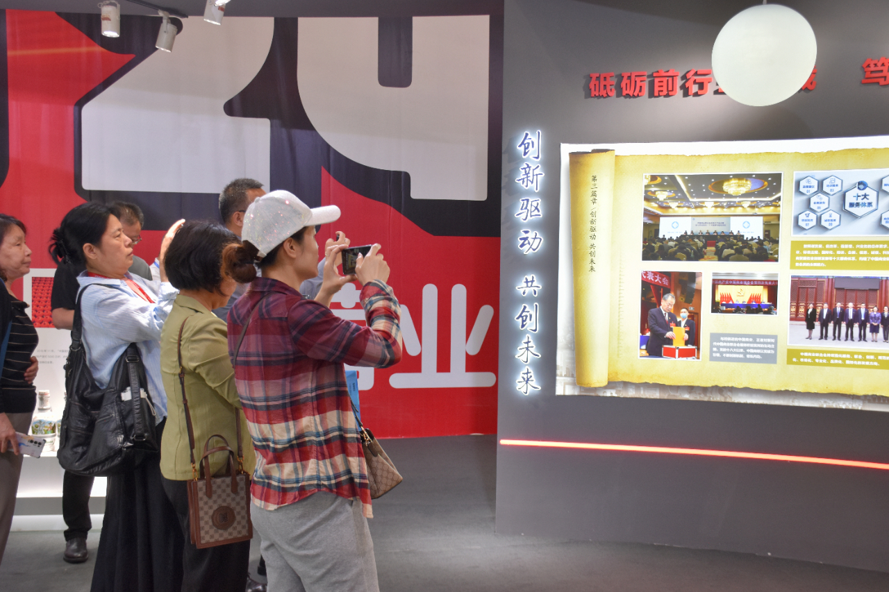 現場觀眾參觀中國商業聯合會30年主題展覽,拍照記錄中國商業與時俱進,在發展道路上“創新驅動,共創未來”的精彩瞬間。