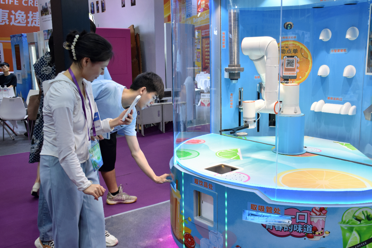 中國商報記者親身體驗機器人奶茶販賣機。
